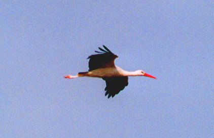 La Cigogne blanche (Ciconia ciconia) est un animal migrateur. Elle peut mesurer jusqu'à 1,30 mètre de hauteur, pour un poids compris entre 2,7 et 4kg (moyenne de 3,5kg). Elle a une envergure de 1,80 mètre, voire 2 mètres. Son bec, de couleur rouge orangé, mesure presque 20cm (15 à 19cm chez le mâle et 14 à 17cm chez la femelle). Il est plus large chez le mâle. Leurs yeux sont noirs, et deux traits noirs les encadrent, donnant ainsi comme une impression de "maquillage". Les couples sont formés pour la vie. Ils construisent généralement des nids de branchages dans les arbres ou sur des constructions humaines comme les cheminées. Ciconia ciconia est la plus connue mais il existe aussi la Cigogne noire (Ciconia nigra). La Cigogne blanche vit en moyenne entre 15 et 20 ans mais elle peut vivre 26 ans. Les cigognes volent avec le cou tendu, comme la plupart des échassiers, contrairement aux hérons qui rétractent le cou en vol. En vol, on peut la distinguer facilement du héron car elle vole le cou tendu, alors que le héron le recourbe, le coude. Le plumage est entièrement blanc, à l'exception des bouts des ailes qui sont noires. On croit souvent à tort que la queue de la cigogne blanche est noire, trompés par ses grandes et larges ailes qui la recouvrent intégralement. Pour communiquer, la cigogne claquette (ou craquette) du bec.